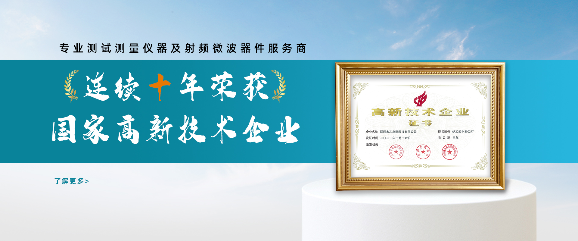核心優勢 擁有射頻微波領域高精尖技術人員20+、專項技術專利50+、榮獲國家高新技術企業